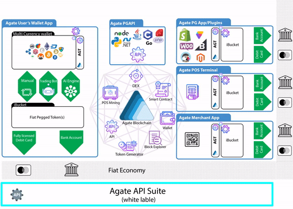 One of the most interesting elements of Agate is the Agate iFiat Ecosystem. It uses decentralised blockchain technology (Agate blockchain) to resolve many of the fundamental issues in the cryptoeconomy, which will facilitate transactions very economically and in real-time.